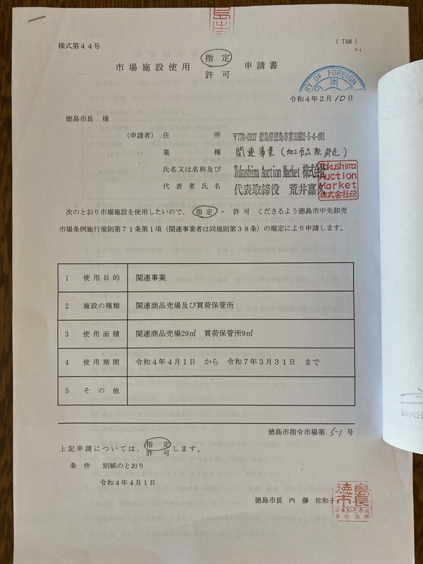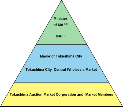 Tokushima City Government Central Wholesale Market was established by the Tokushima City government with permission from the Japanese government of MAFF in 1978. Therefore, it is owned by the Japanese government and controls and manages all of the approximately 40 central wholesale locations nationwide.